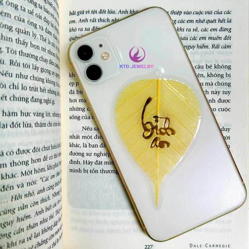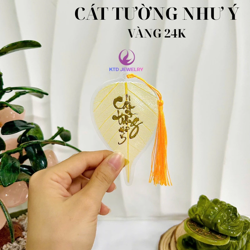 – Màu sắc lá: lá vàng chữ thư pháp 24k